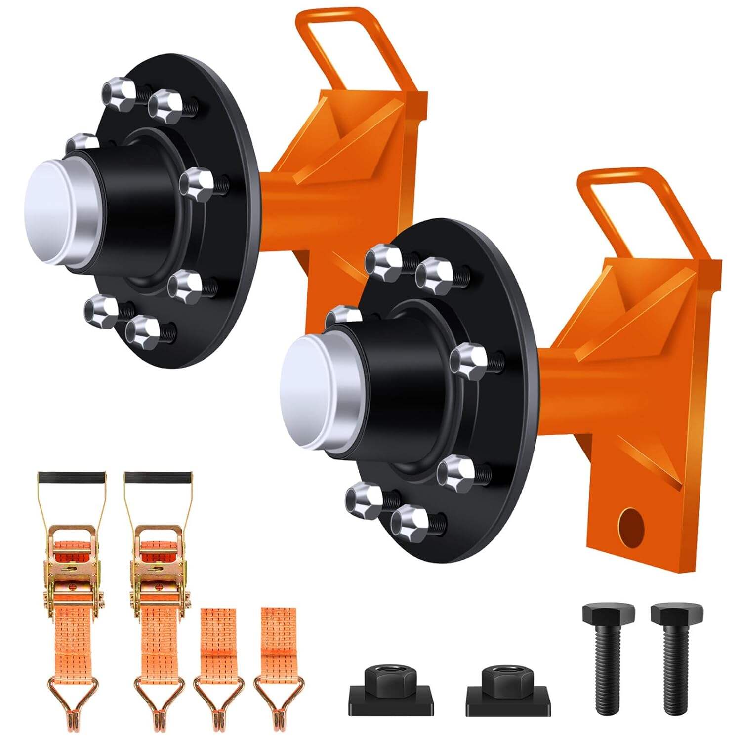 2-Pack Shipping Container Wheels 8-Lug Wheels Kit Heavy Duty Shipping Container Axle with U-Shaped Handle