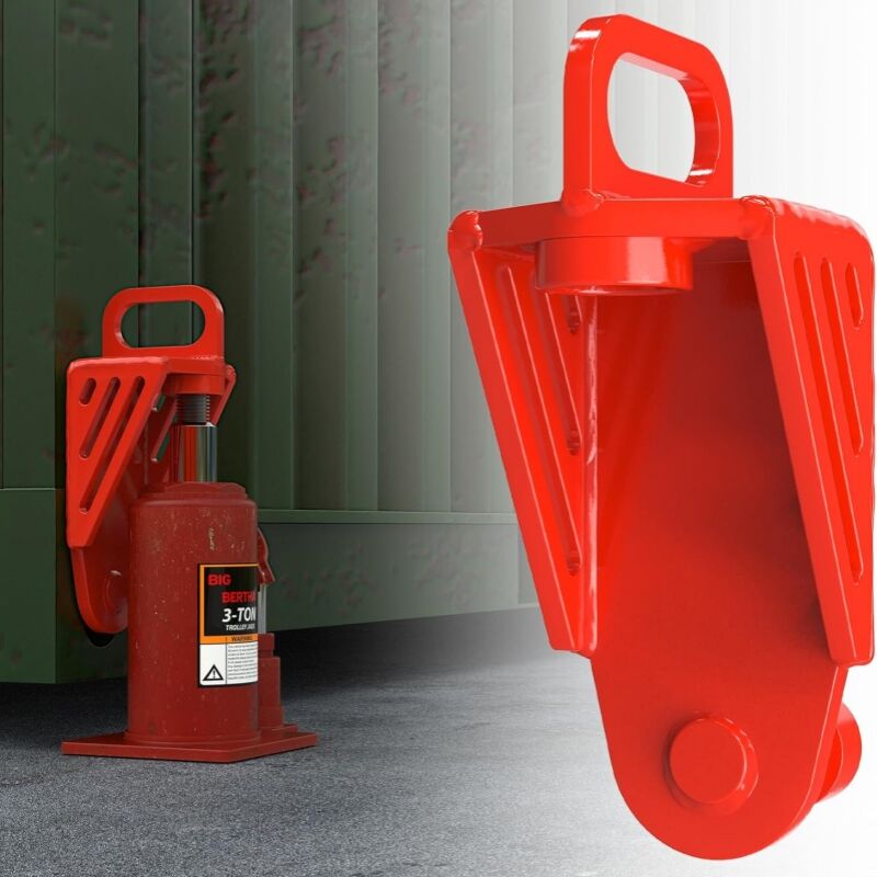 The shipping container booster lifter crafted from premium high carbon steel, this durable attachment ensures ground leveling flatness. The container booster is equipped with a portable U-shaped handle, making it more convenient to use,and it also features a ring-shaped anti-slip design to prevent the jack from moving or tilting during operation.Perfect for lifting and stabilizing containers, it's a versatile storage container leveler booster.