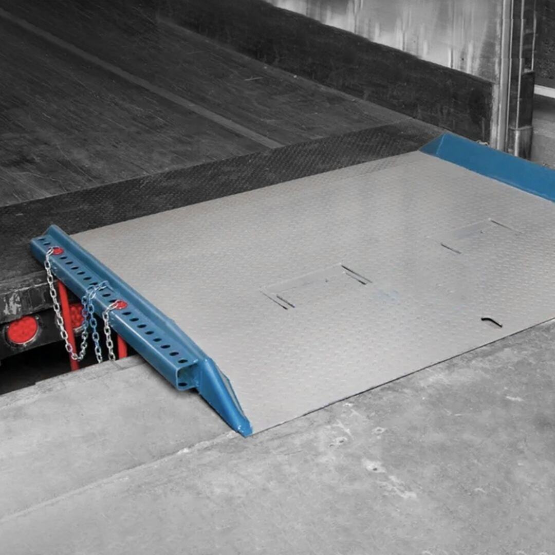 This loading/unloading platform is mainly used for connecting the logistics platform with the truck. It can quickly connect the loading/unloading platform with the truck's cargo compartment, and can also quickly disengage, facilitating the loading and unloading of goods by forklifts. There are connecting chains on both sides, facilitating the movement of forklifts. Guardrails are welded on both sides to prevent the forklift from falling. The surface is galvanized or painted. The specific dimensions can be discussed with our technical staff to select a platform with appropriate load-bearing capacity and suitable size.