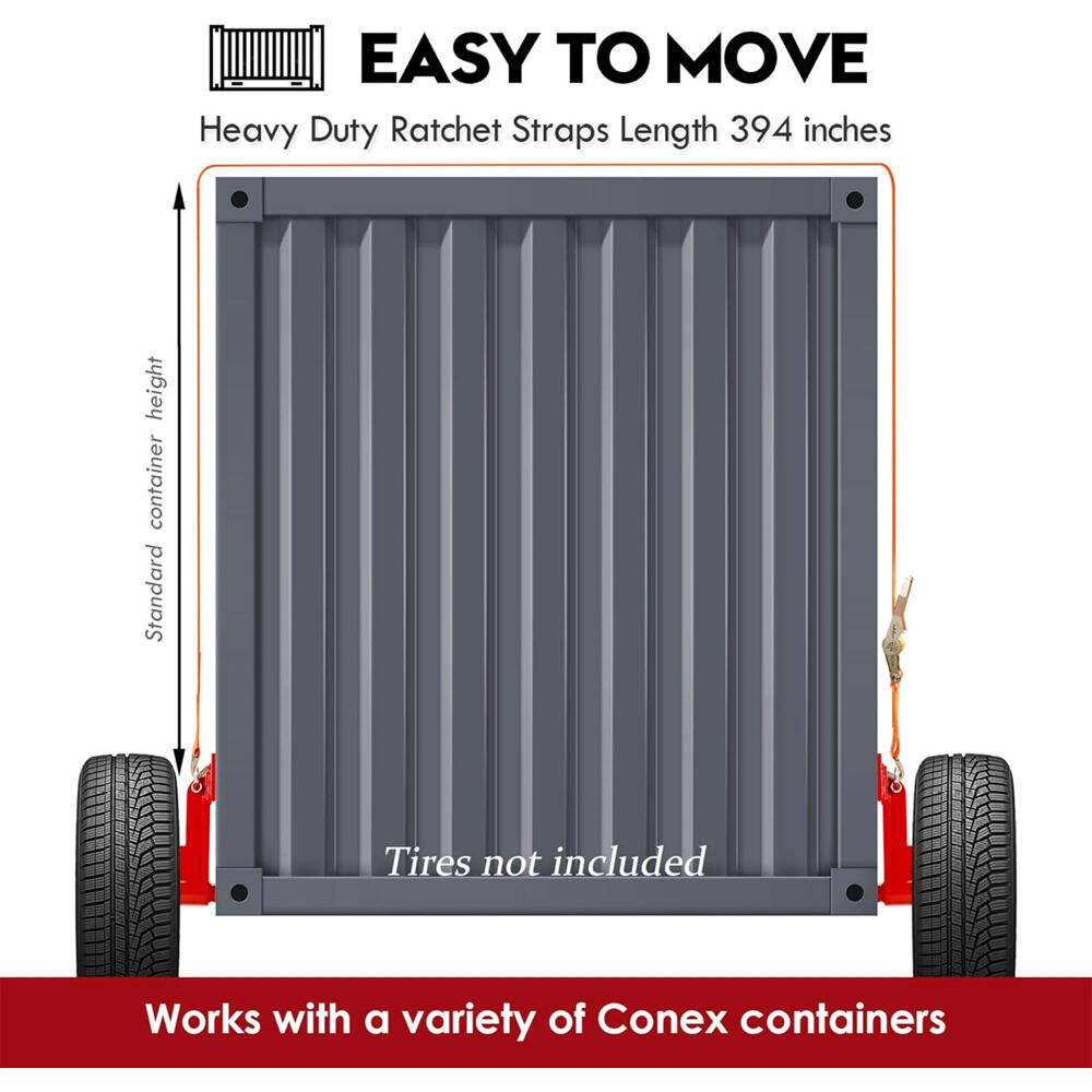 Regardless of whether you are situated on a construction site, within a storage facility, or at any site necessitating the movement of containers, our product offers reliable solutions. The Shipping Container Wheels kit, effectively level your container by adapting to diverse ground conditions, ensuring smooth and efficient transportation.