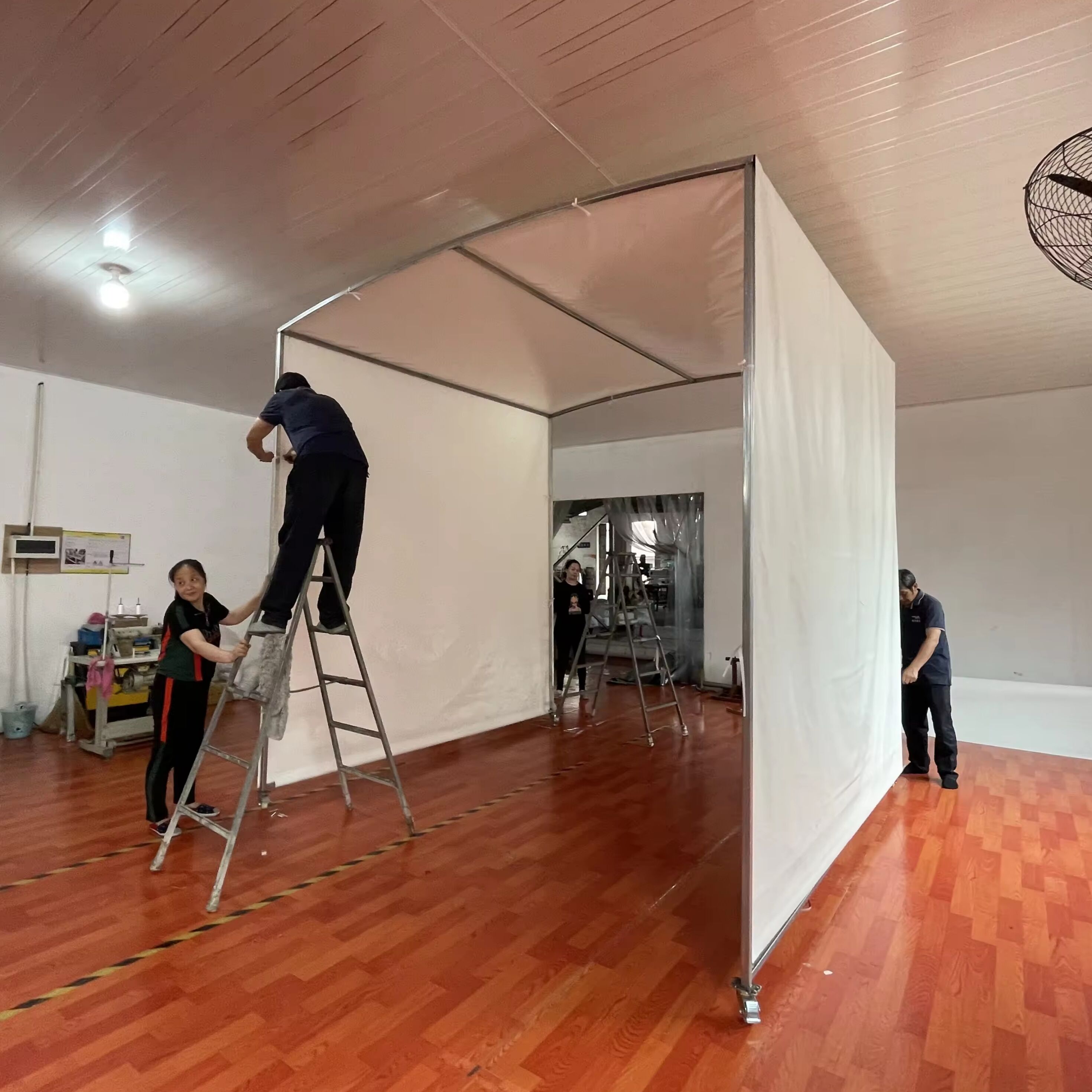 Bu konteyner tente sistemi dört tekerleğe sahiptir ve isteğe bağlı olarak serbestçe taşınabilir veya sabitlenebilir. Tekerlekler fren fonksiyonu ile donatılmıştır ve kullanımı oldukça kolaydır.